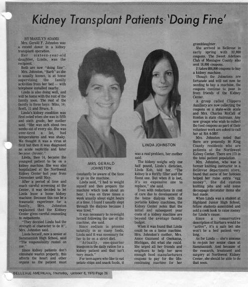 A pioneer patient: Linda Johnston and the early days of kidney transplantation[Screenshot of newspaper article with heading "Kidney Transplant Patients: Doing Fine"]
