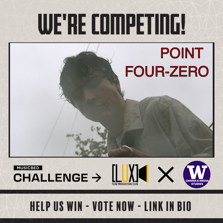 LUX: Film Production Club and the Cinema & Media Studies department are teaming up to represent UW at the 2022 Musicbed Challenge! In the last month, we assembled a crew of LUX members and CMS students to create a short film called "POINT FOUR-ZERO", which has been accepted into the running for the challenge. Now, we're competing for the People's Choice Award, which is awarded to the film that receives the most votes; and you can help us win!